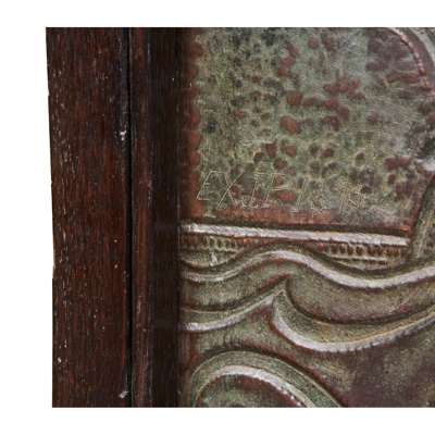 repoussé-decorated copper with stained oak frame, signed verso EX JP 1895