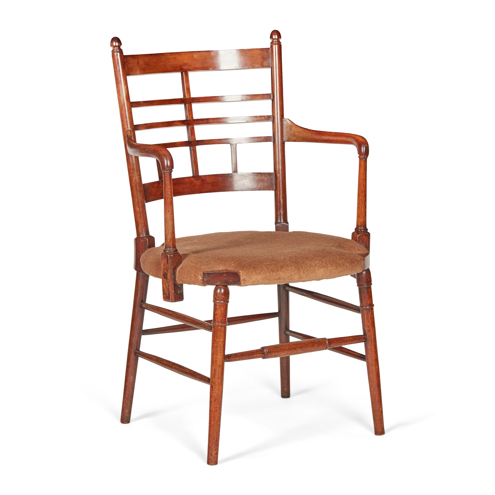 beech and walnut, with later-upholstered seat, stamped to leg JAS SHOOLBRED 7840