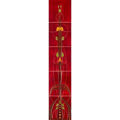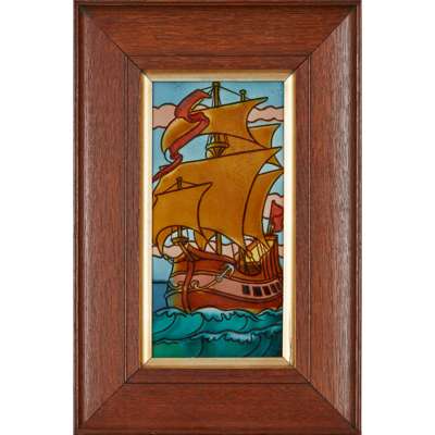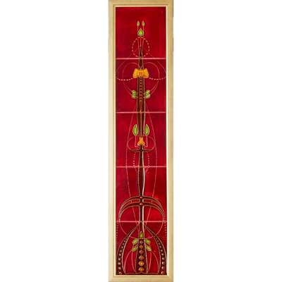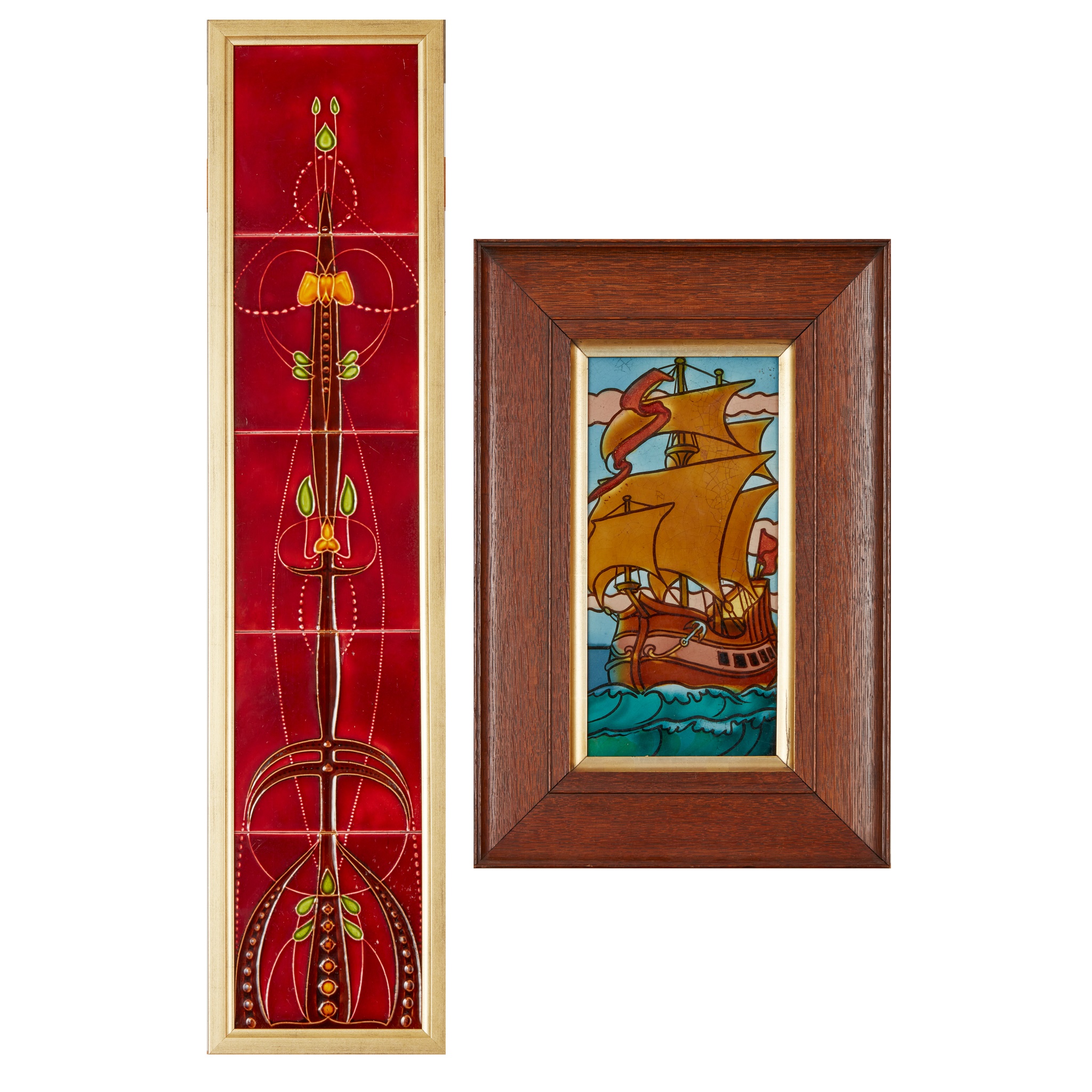 glazed ceramic, 30.5cm x 15.5cm; together with a FRAMED FIVE-TILE PANEL, glazed earthenware, each tile 15.3