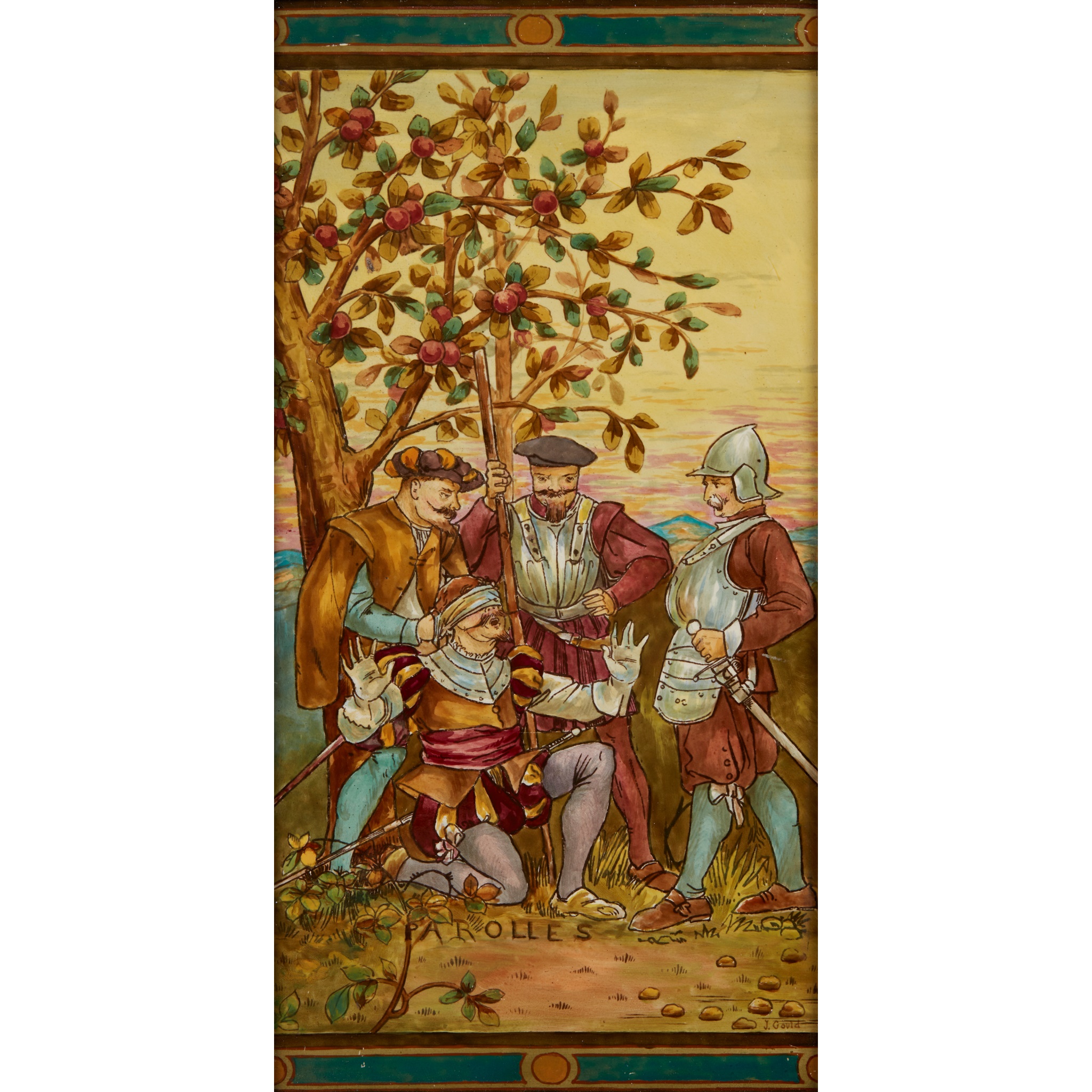 glazed ceramic, one with the inscription PAROLLES (from All's Well that Ends Well), the other inscribed CLOWN/ SHEPHERD/ AUTOLYCUS (from The Winters Tale), each signed lower right J. GOULD