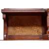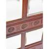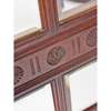 mahogany, clear glass, bevelled mirrored glass and brass fittings, abalone shell inlay, machine-embroidered fabric, embossed leather paper