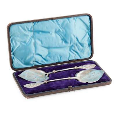 PAIR OF CASED AESTHETIC MOVEMENT SERVERS, CIRCA 1880