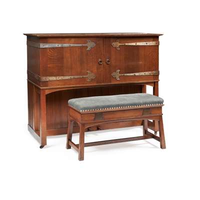 ARTS & CRAFTS ‘MANXMAN’ PIANO AND STOOL, CIRCA 1904