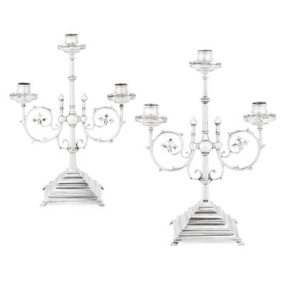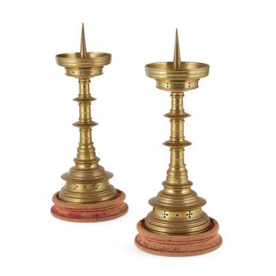 PAIR OF GOTHIC REVIVAL CANDLESTICKS, CIRCA 1880