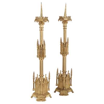 PAIR OF GOTHIC REVIVAL ALTAR CANDLESTICKS, CIRCA 1890