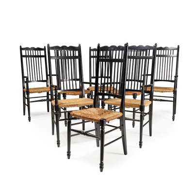 GROUP OF EIGHT ARTS & CRAFTS STYLE 'SUSSEX' CHAIRS, EARLY 20TH CENTURY