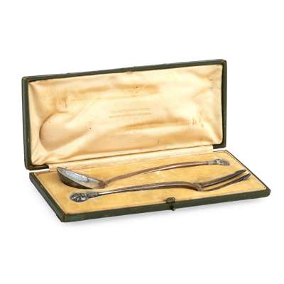 ARTS & CRAFTS PRESERVE SPOON & PICKLE FORK, LONDON 1913
