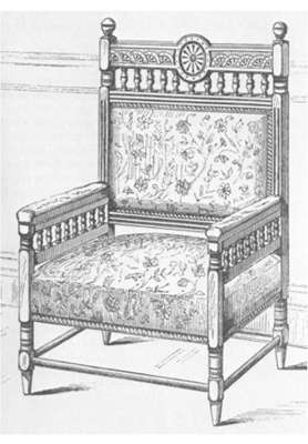 Literature: Eastlake, Charles L. Hints on Household Taste, Longmans, Green & Co., 1878, where a drawing for the matching armchair is illustrated.
