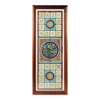 stained, leaded and painted glass, mounted within a timber frame, glazed to each side