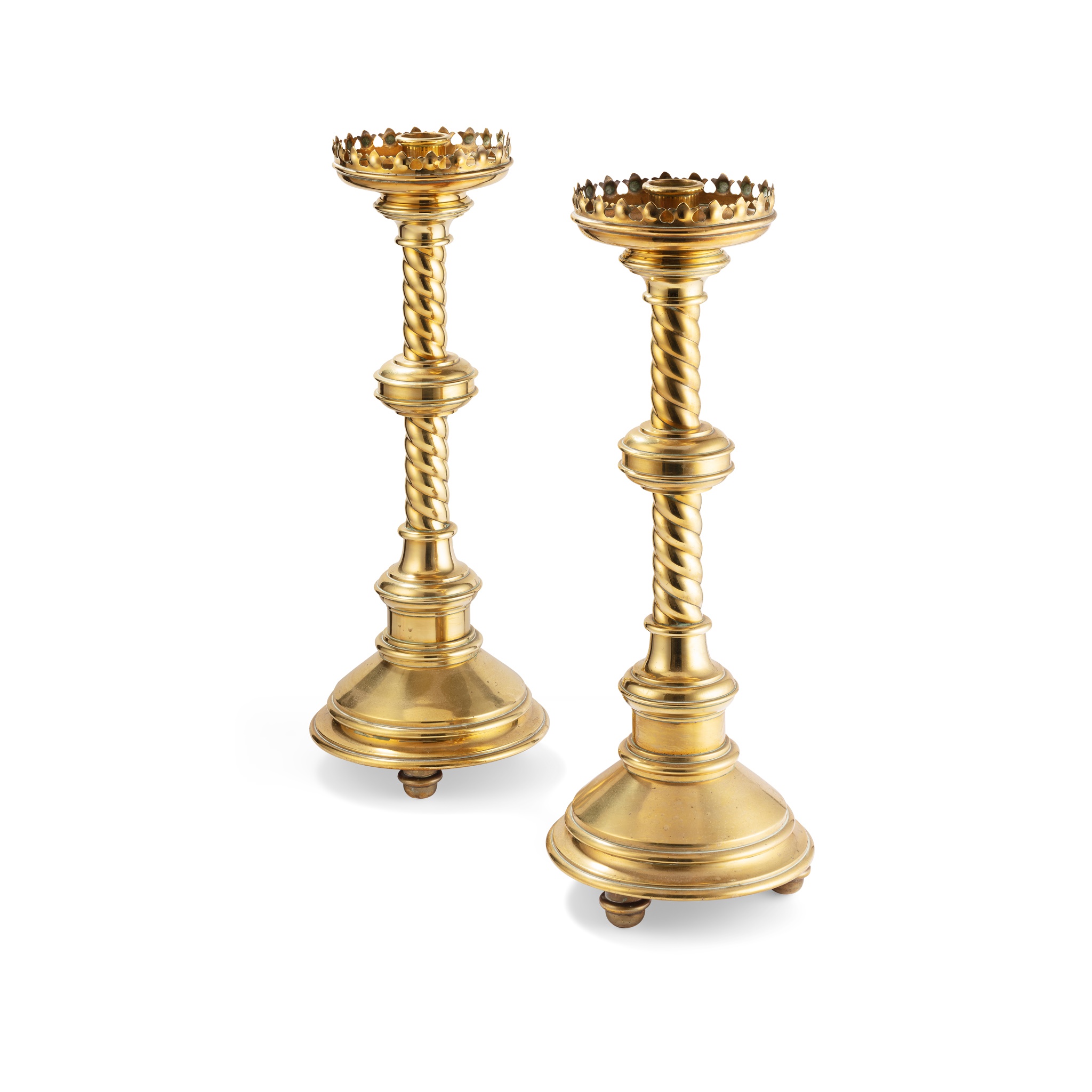 PAIR OF GOTHIC REVIVAL CANDLESTICKS, CIRCA 1890