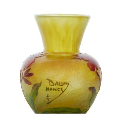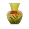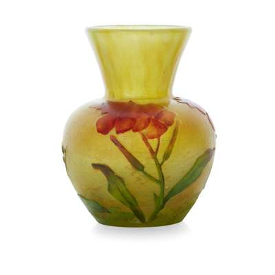 painted cameo glass, decorated with flowering lilies, signed to the body DAUM/ NANCY with Cross of Lorraine