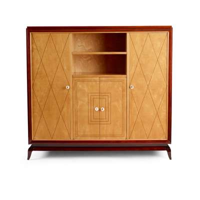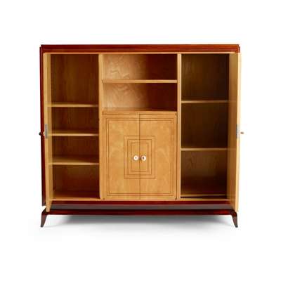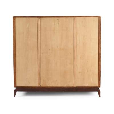 stained mahogany, sycamore with line inlay, with ivory escutcheons, interior fitted with adjustable shelves