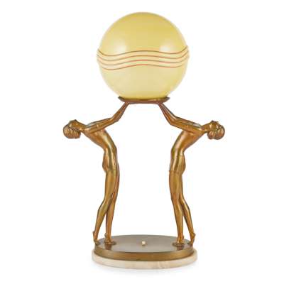 ART DECO DOUBLE LADY TABLE LAMP, CIRCA 1925