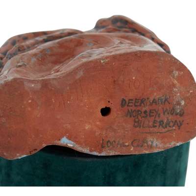 glazed terracotta, incised STELLA R. CROFTS, painted DEERSBANK/ NORSEY WOOD/ BILLERICAY/ LOCAL CLAY