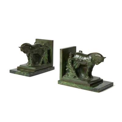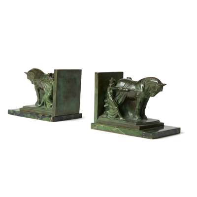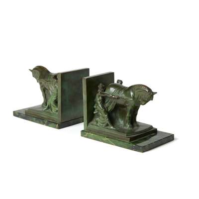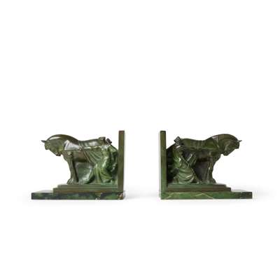 Note: The Art Deco headquarters for the Unilever Group, Unilever House was built in 1930-31 to a design by J. Lomax-Simpson with Burnet, Tait and Lorne. The building is noted for its monumental facade, mounted with a large pair of statues by Sir William Reid Dick entitled 'Controlled Energy'. Other artists involved in the project included Eric Gill and Gilbert Ledward. These rare figures by Reid Dick are reductions of the figures on the facade. At the inauguration of Unilever House on 18 July 1932, a pair of small models of these groups in bronze, designed to form book ends were presented to the Lord Mayor and Lord Leverhulme. Another pair, the only other known apart from the current lot, is now in a London private collection.