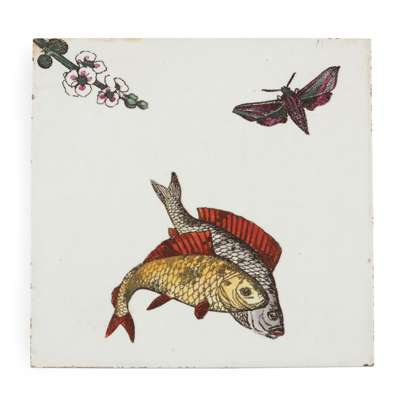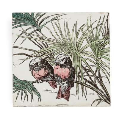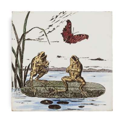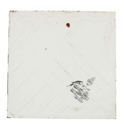 glazed earthenware, moulded maker's marks and date lozenge, printed maker's marks, 20.7cm square; together with THREE BROWN - WESTHEAD, MOORE & CO. TILES, the designs attributed to Pierre Mallet, moulded maker's marks, 20.2cm square