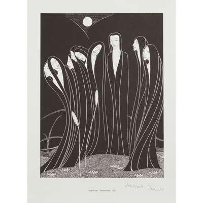 comprising 'NIGHT FORMS', 1932, signed in pen lower right, 40.2cm x 29.3cm; 'FLIGHT', 1939, signed in pencil lower right, 44cm x 30.5cm; 'WOMAN WITH BIRDS', 1947, signed in pencil lower right, 44.5cm x 34.2cm; and 'MOON BALLET', 1934, signed in pencil lower right, 43cm x 29.3cm, all unframed