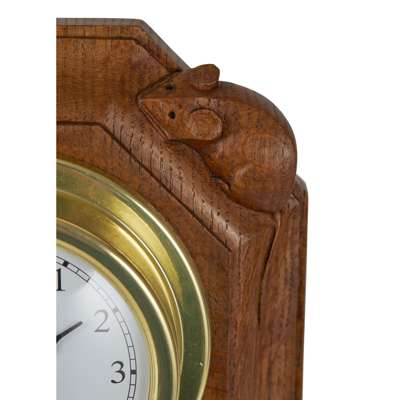 oak, with carved mouse signature, fitted with a later movement