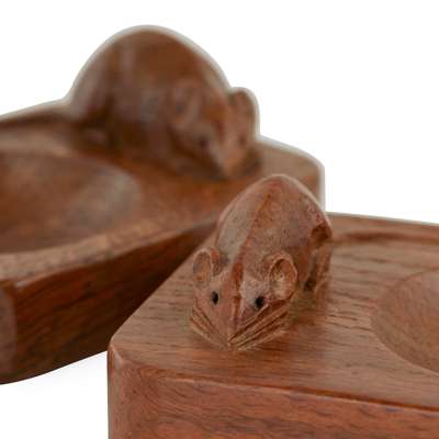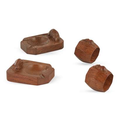 oak, each with carved mouse signature, 10cm across; together with TWO NAPKIN RINGS, 1980s-1990s, oak with carved mouse signature to each, 5cm high