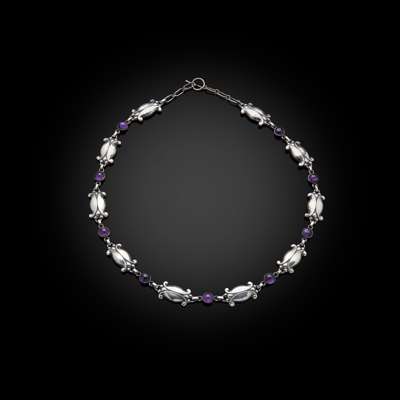model no.15, sterling silver, set with amethyst cabochons, stamped GEORG JENSEN/ STERLING/ DENMARK/ 15