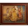 mahogany with gilded highlights, inset with a painted panel after Walter Crane, embossed velvet panels and mirrored glass