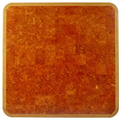 walnut, burr walnut parquetry inlay, ebony inlay to the rim and base, base with brass trim