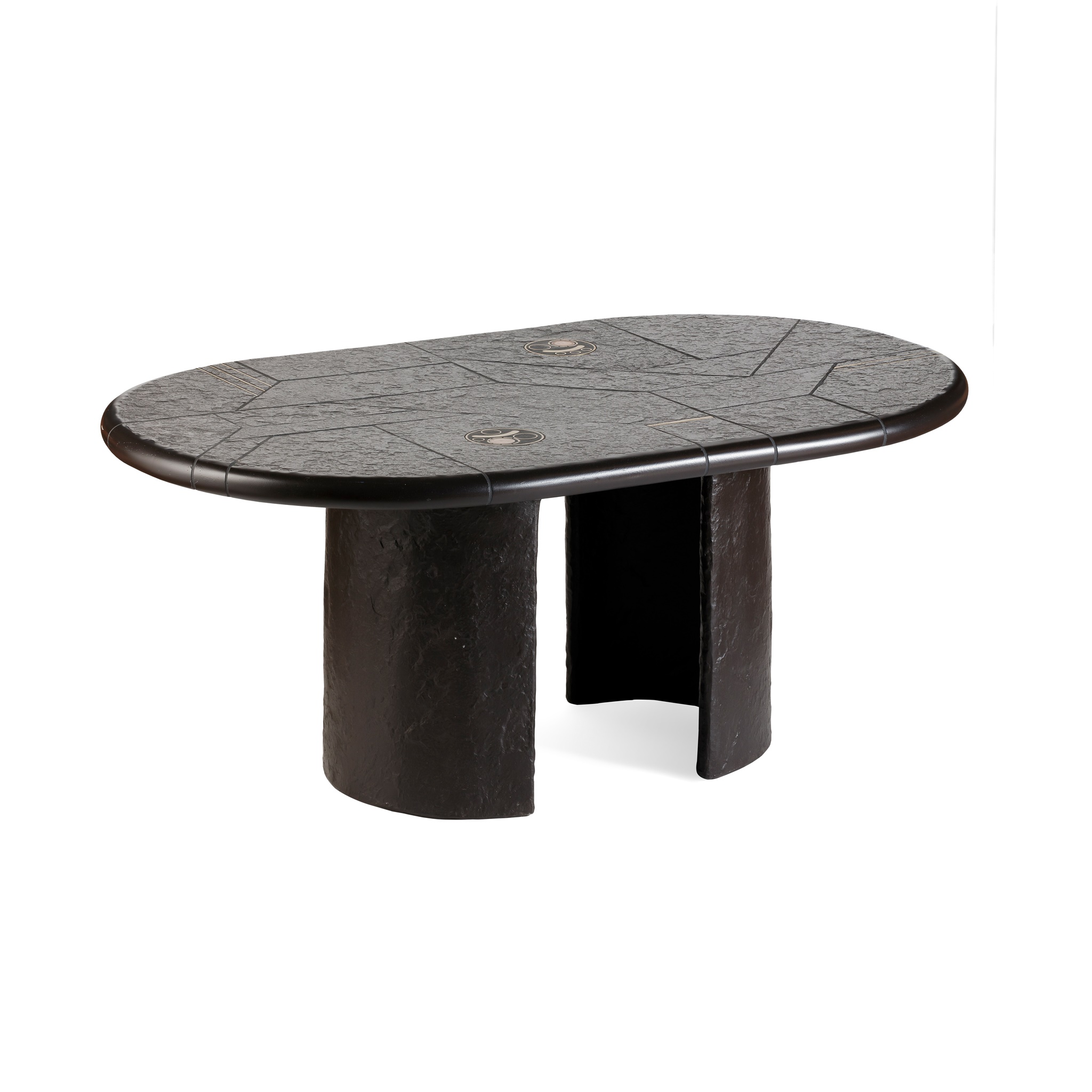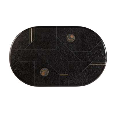slate, inlaid with brass and copper, facsimile signature to top