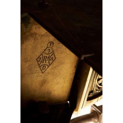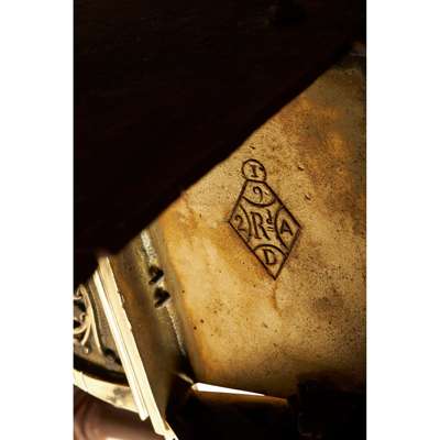 cast iron, cast brass, inset with glazed earthenware tiles, with cast registration lozenge (twice) for 1871