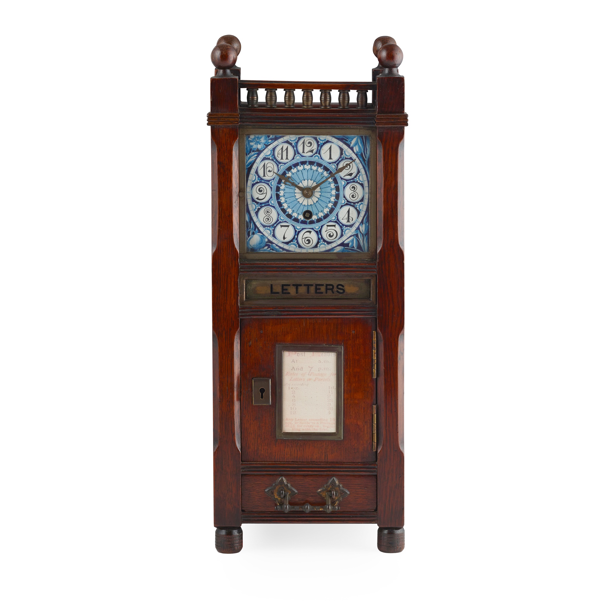 glazed earthenware dial within an oak case, fitted with a brass letterbox