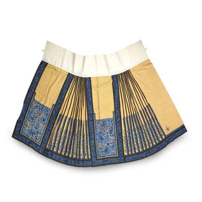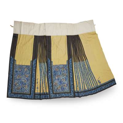 清末民初 黃地刺繡蝴蝶牡丹紋馬面裙(共兩件)