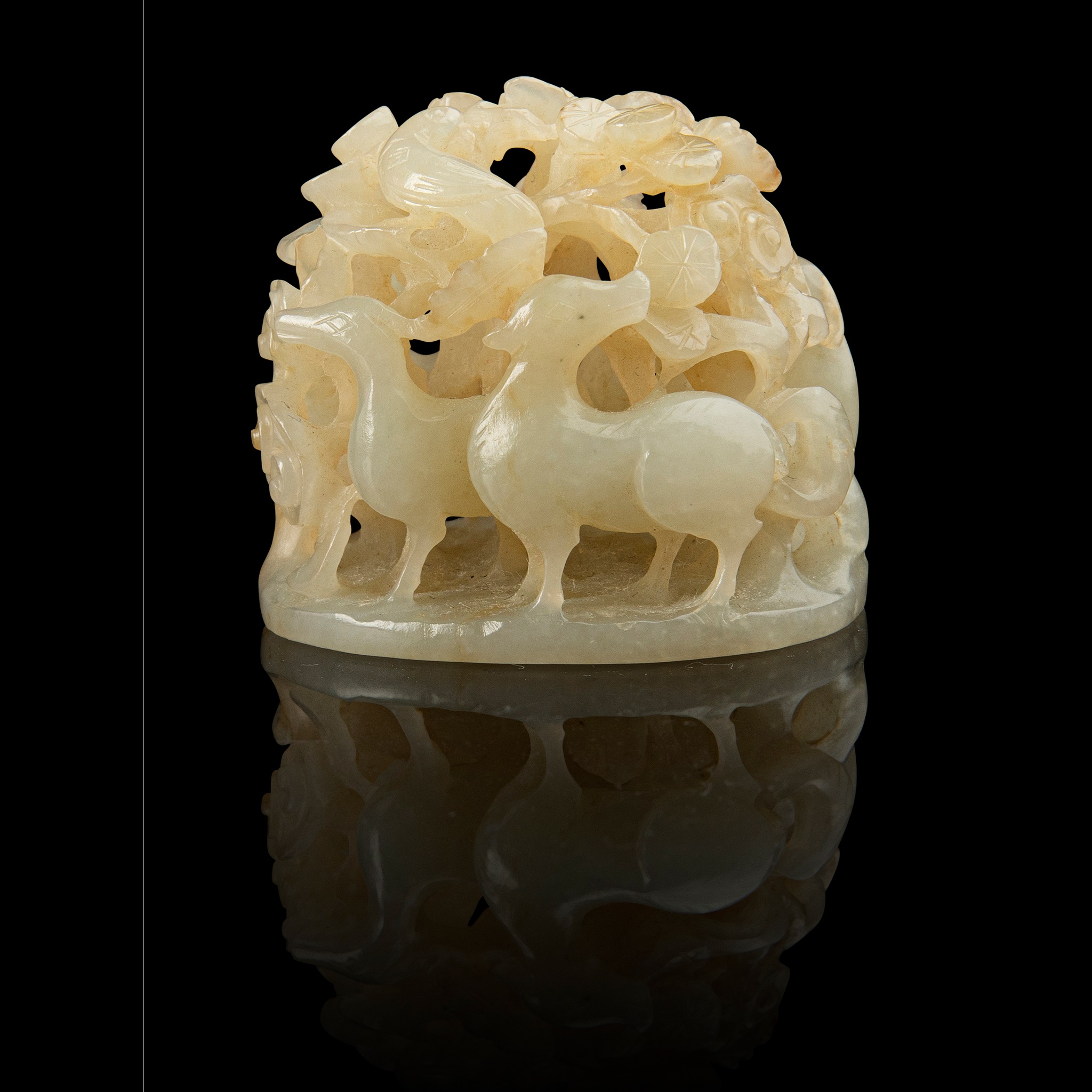 WHITE JADE 'DEER' CENSER COVER FINIAL