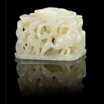 WHITE JADE 'CRANE AND LOTUS' HAT FINIAL