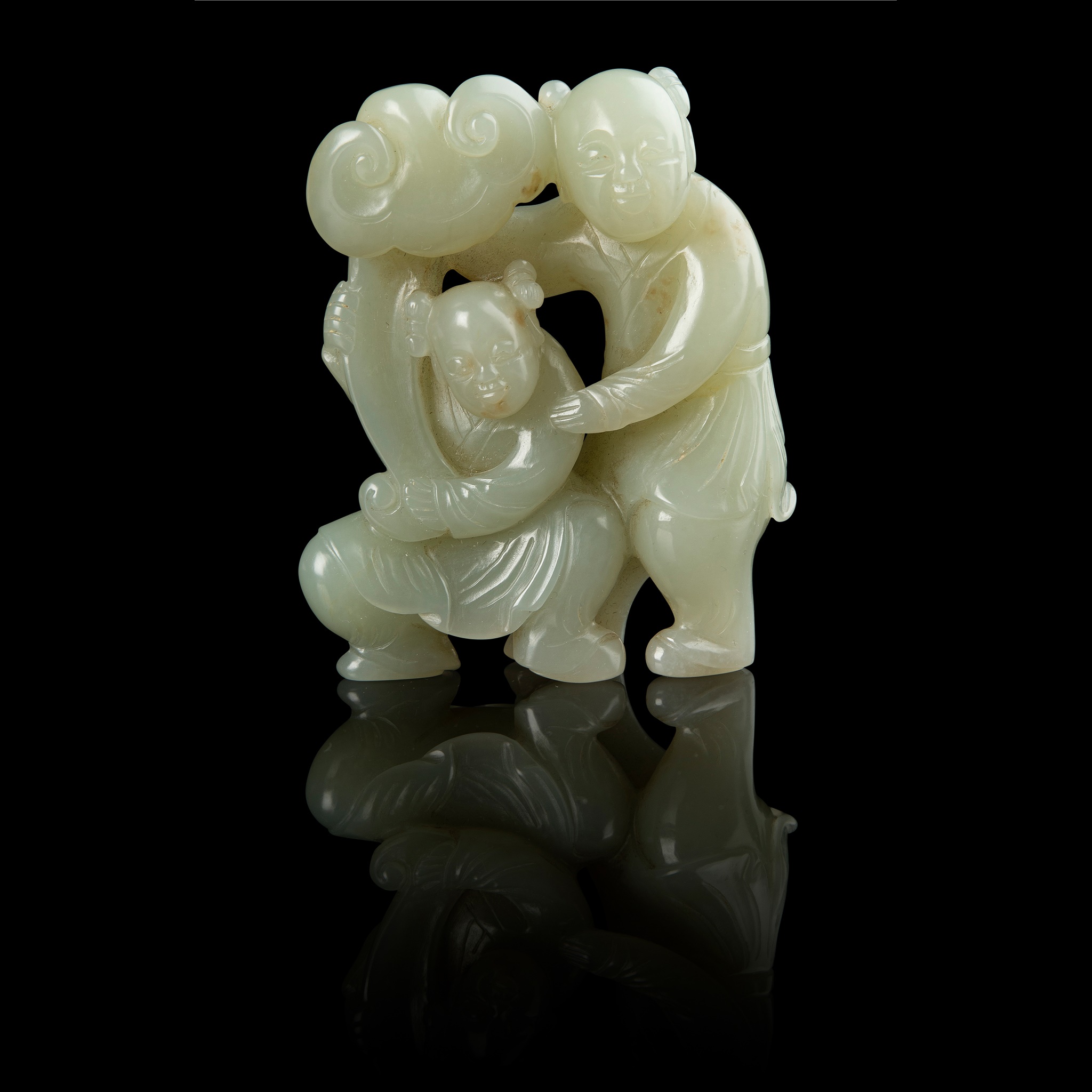 PALE CELADON JADE CARVING OF 'HEHE' BOYS