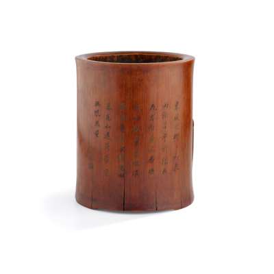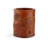 清 仿吳之璠款 竹雕美人讀卷刻秦觀詩筆筒