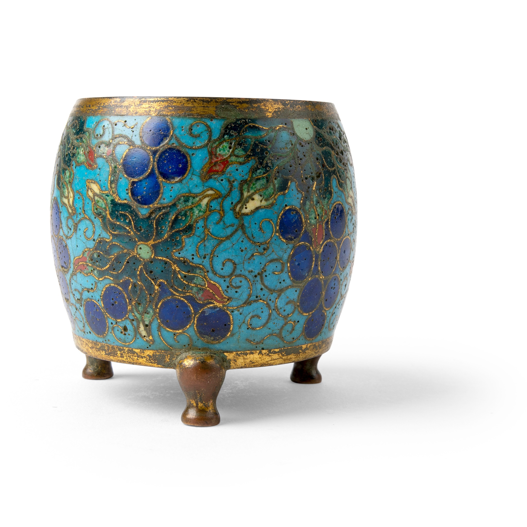 CLOISONNÉ ENAMEL 'GRAPES' TRIPOD INCENSE BURNER