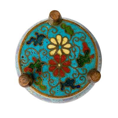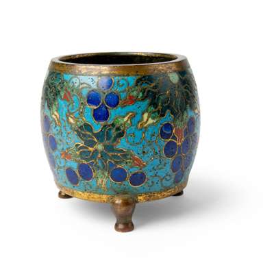 明末清初 銅胎掐絲琺瑯葡萄紋筒式三足爐