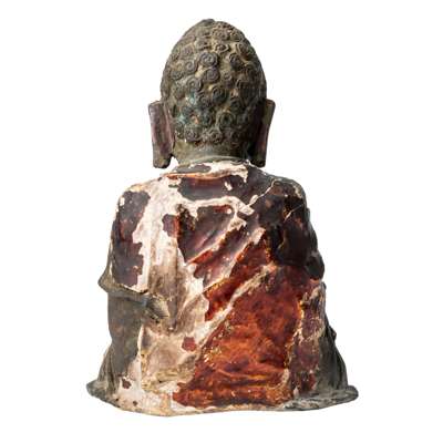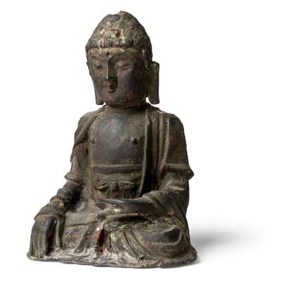 LACQUERED BRONZE FIGURE OF A SEATED BUDDHA