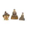 GROUP OF THREE SILVER AND GILT COPPER ALLOY FIGURES OF BUDDHIST MASTERS