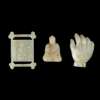 清 白玉雕座佛、青白玉雕佛手 及 青白玉雕袈裟扣(共三件)