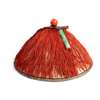 of conical form, red threads overlaid the creamy ground, wide edge bound with patterned silk roll, lined in burgundy fabric, topped with a red bead finial and jade tube