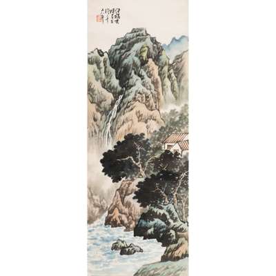 二十世紀 傅狷夫 山水畫 設色紙本 (共兩幅)