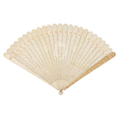 finely carved on one side, with birds and flowers in foliage enclosing a central shield with coronet and monogram, the solid guard sticks minutely carved in low relief with flowers