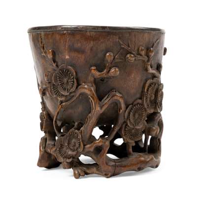 HUANGHUALI CARVED 'PRUNUS' LIBATION CUP