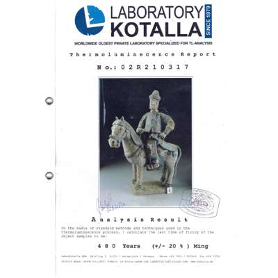 Note: with an original and signed Thermoluminescence Report no.: 02R210317 issued by Laboratory Kotalla, Germany, stating that the piece is dated to the Ming dynasty.