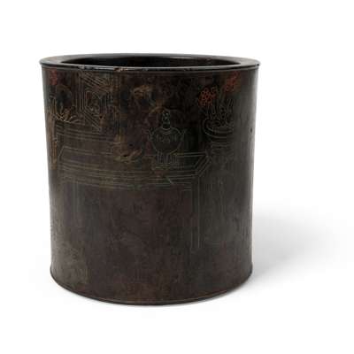 RARE ZITAN INCISED AND COLOURED 'BEAUTY BATHING' BRUSH POT