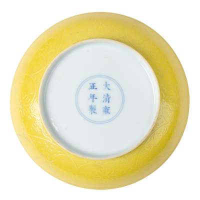Note: A very similar Yongzheng-marked Imperial-yellow-glazed dish, of similar size to the present example, was sold at Christie's New York, 13 Sep 2019, lot 1125