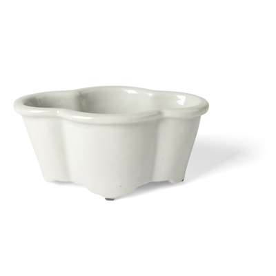 supported on four ruyi-headed short feet, the gradually splayed sides terminating into a lipped rim, covered overall in a thick creamy glaze with greyish tinge, leaving only the tip of the feet unglazed and revealing the dark bronze 'iron' body