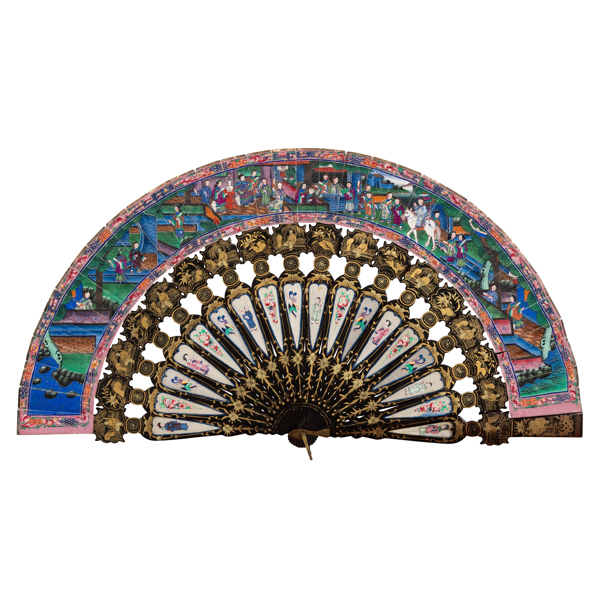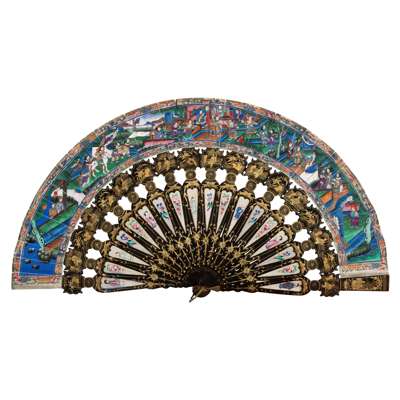 CANTON LACQUERED AND PAPER 'THOUSAND FACES' FAN