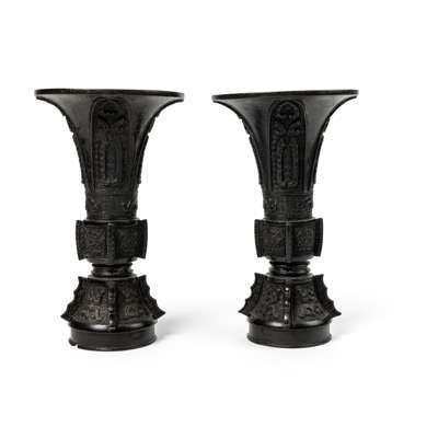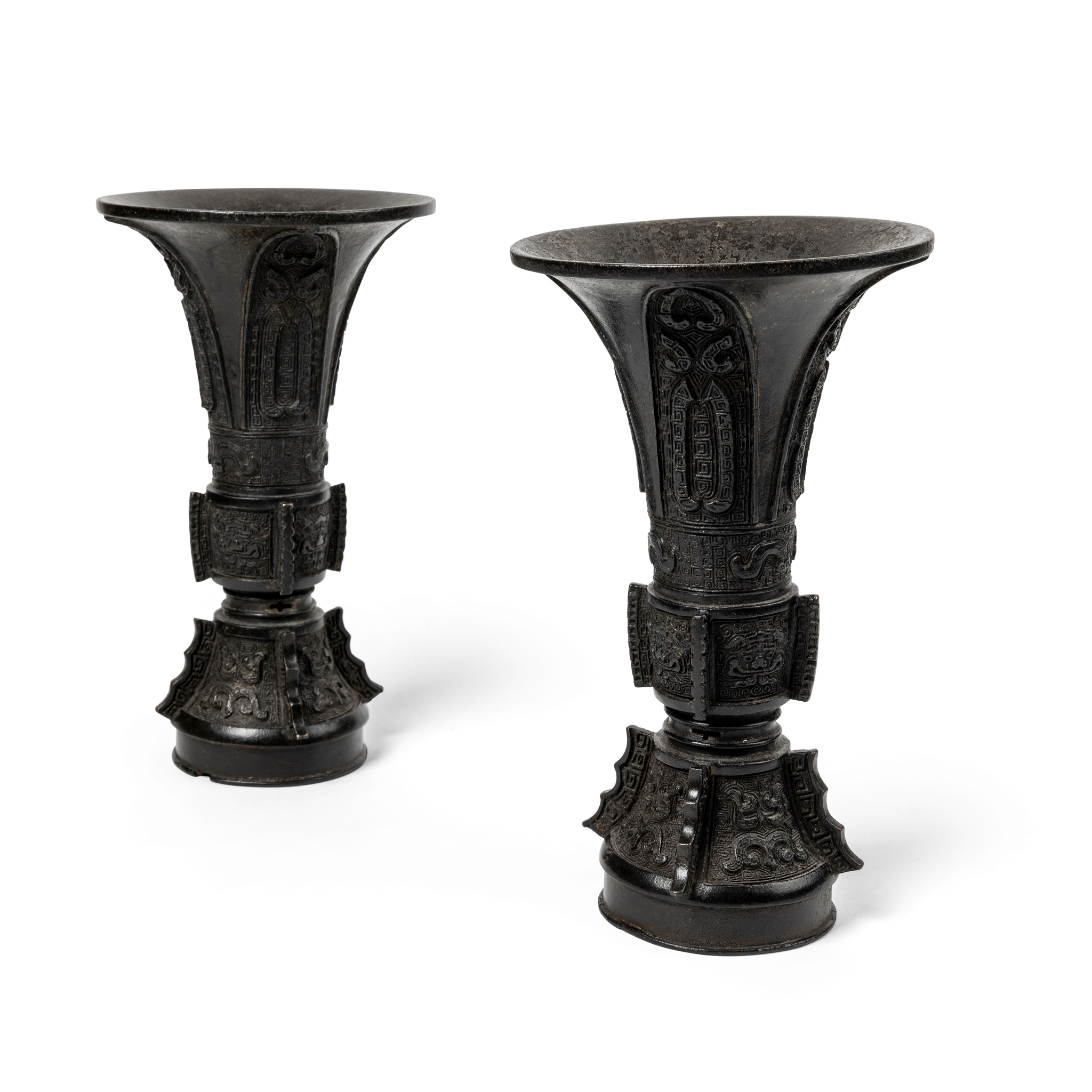 PAIR OF BRONZE ARCHAISTIC 'GU' VASES