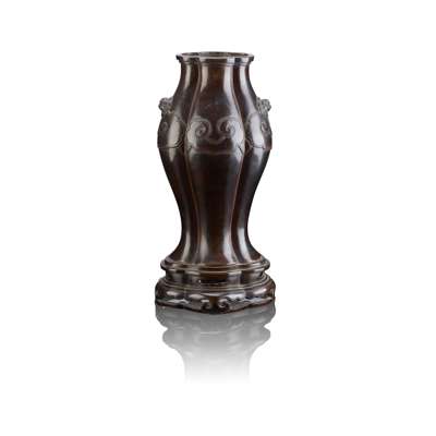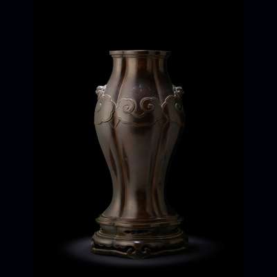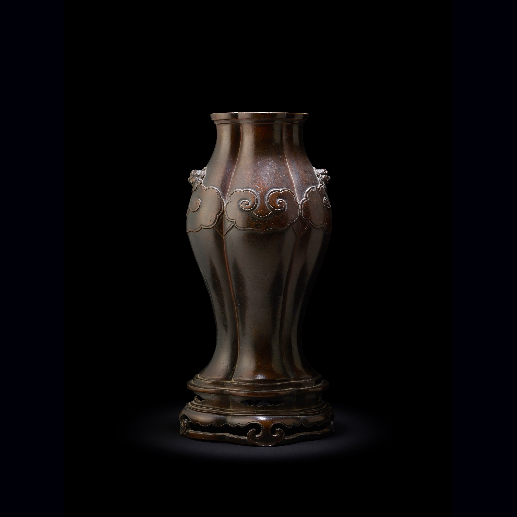 Note: A similar bronze lobed vase with elephant handles, dated to the 17th century, comparable with the ruyi collar and raised on an integral stand, was sold at Sotheby's New York, 21 March 2015, lot 764